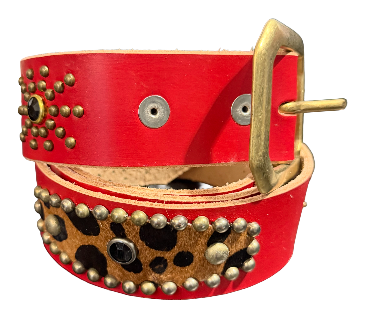 Studded 'Cheetah Felt/ Sun Gem' Red Belt