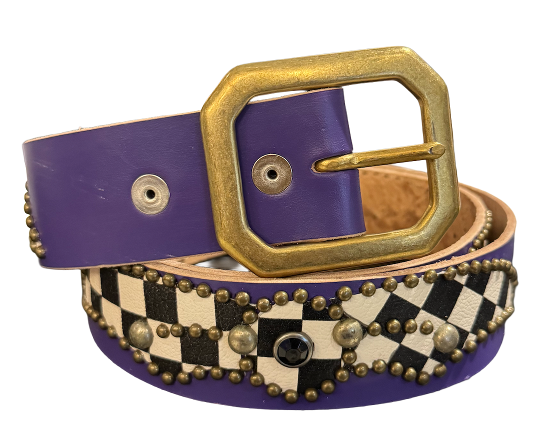 Studded 'Black White Checkered Gem' Purple Belt