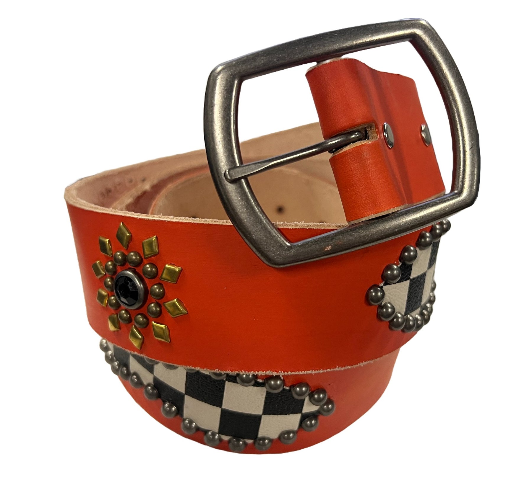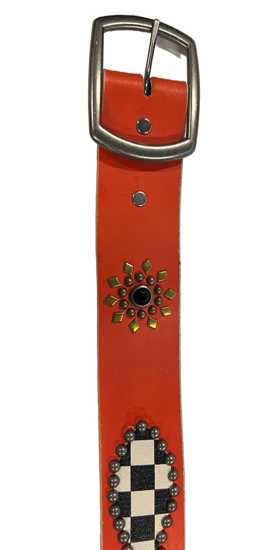 Studded 'Checkered Flower' Orange Belt