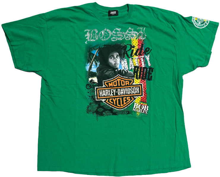 Bossi 'Bob Marley Harley Davidson' Green Rhinestone Vintage Tee