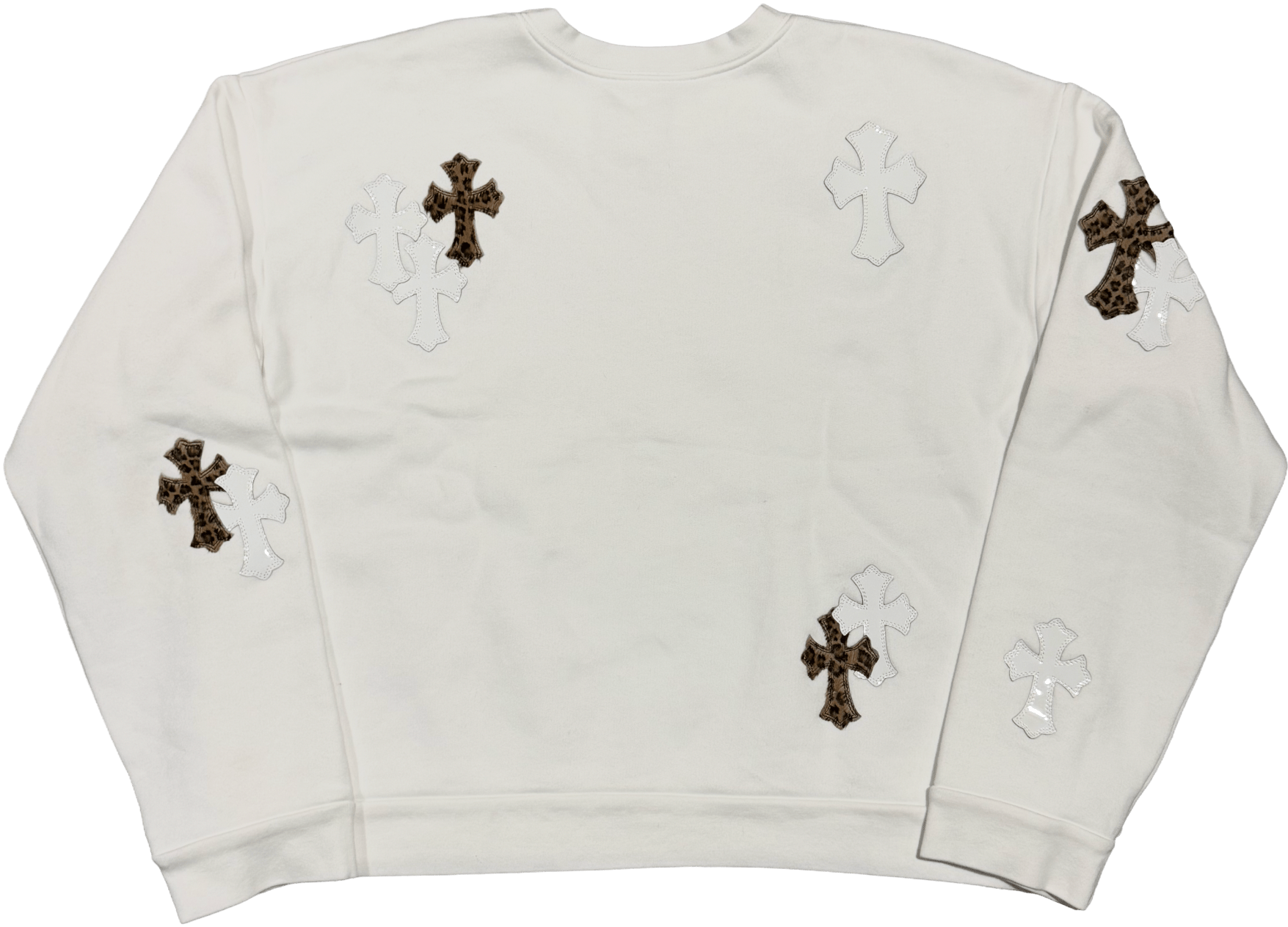 Chrome Hearts 'White Leopard' Cross Patch White Crewneck - 9C4DFB8E