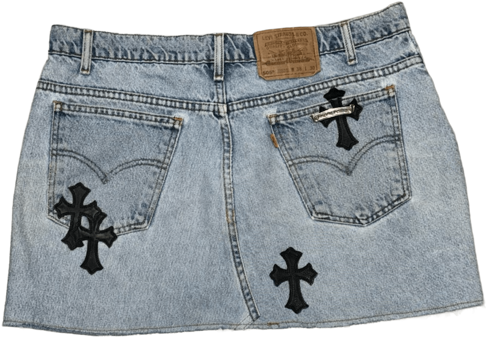 Chrome Hearts '10 Patch' Light Blue Jean Skirt