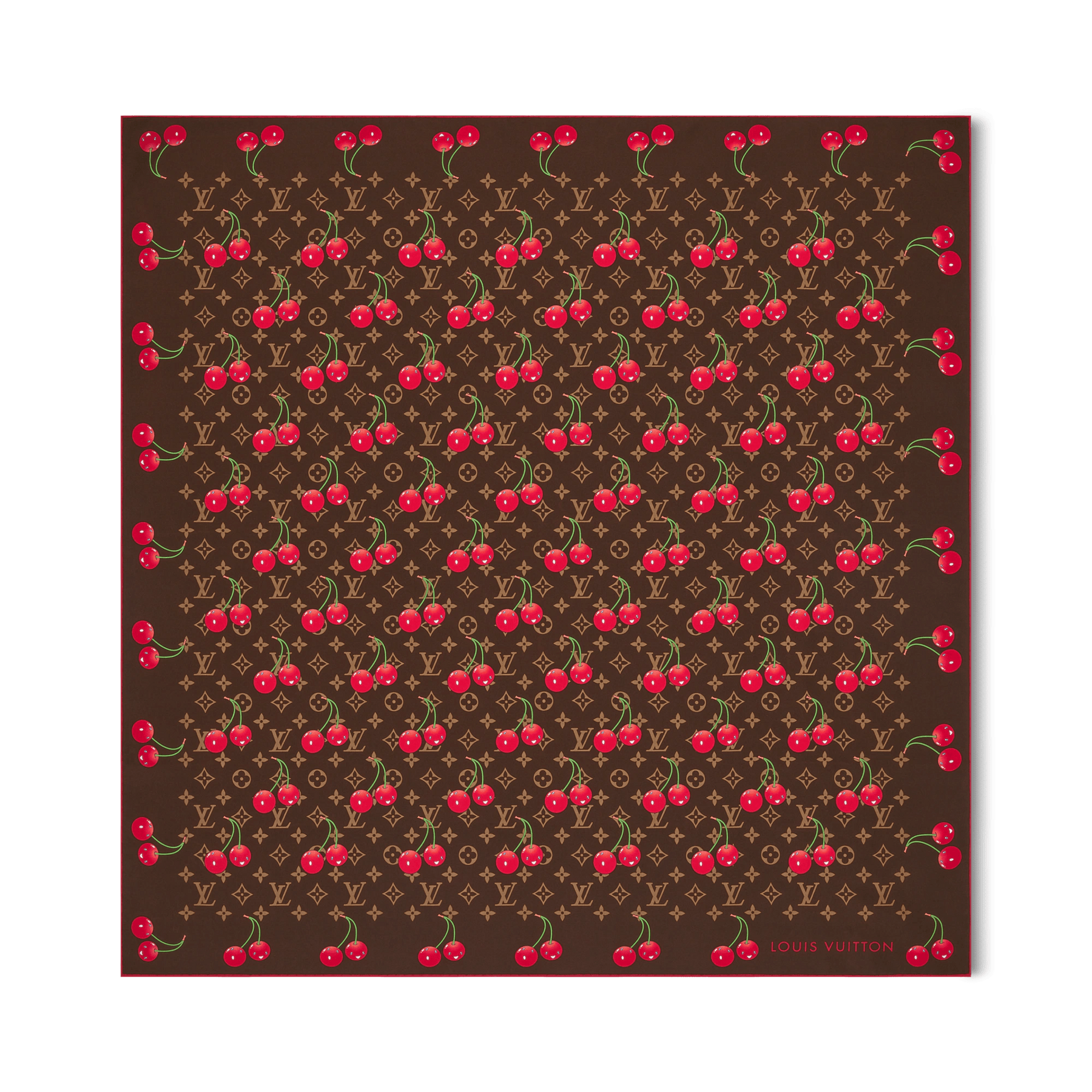 Louis Vuitton x Takashi Murakami 'Cherry Motif' Monogram Cerise 90 Silk Square