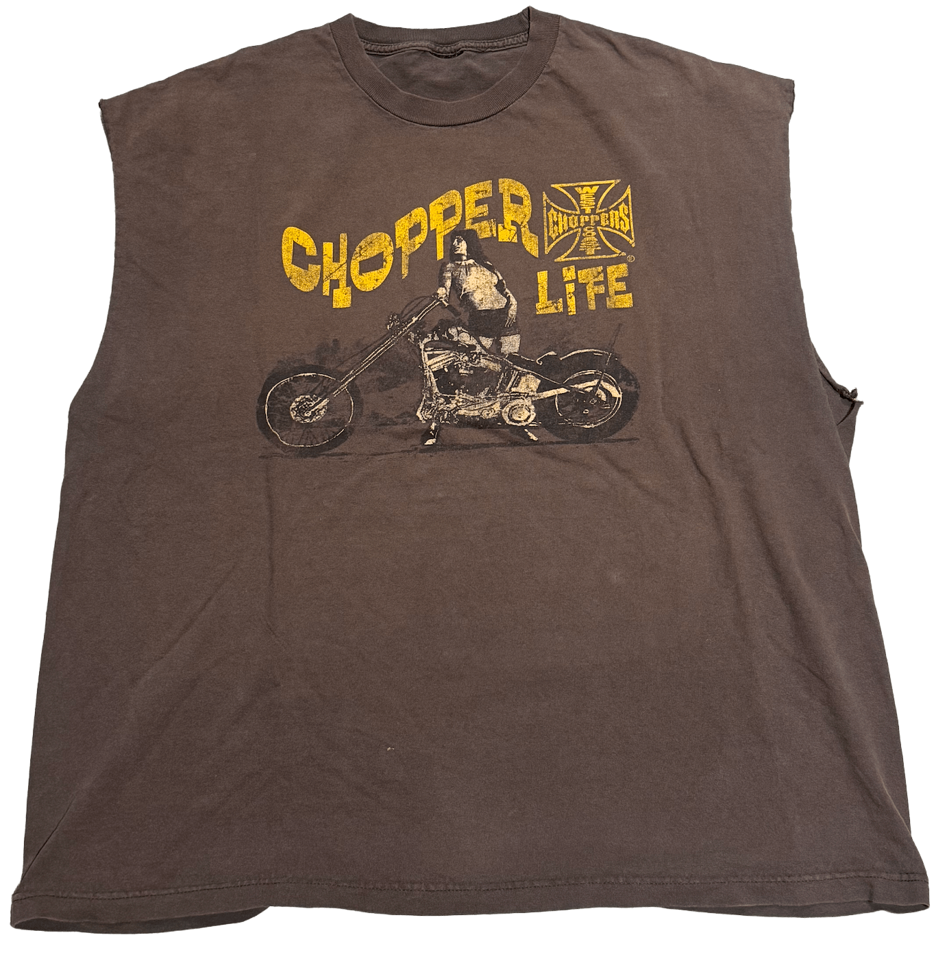 West Coast Choppers 'Chopper Life' Vintage Cut Off Brown Tee - 7430FE9D